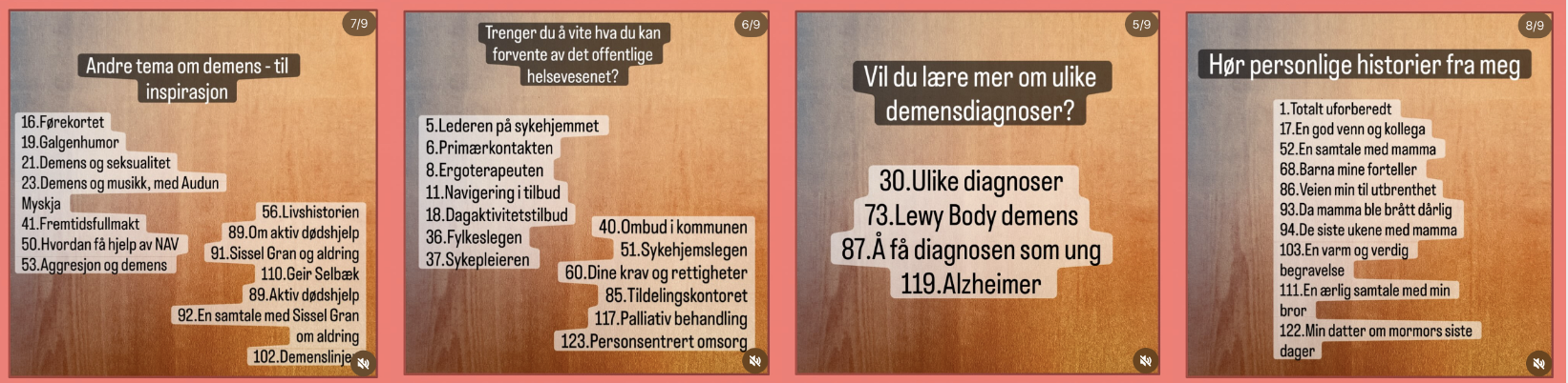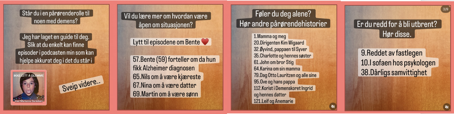 Jeg produserer denne podcasten som skal hjelpe deg som står i pårørenderollen til noen du er glad i med demens. I skrivende stund har podcasten mer enn 130 episoder og over 10.000 faste lyttere.